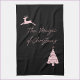 Diseño moderno en negro y rosa decorado con letra de guión, reno y árbol.