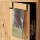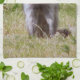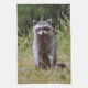 Un mapache femenino joven bloquea la trayectoria a sus bebés que beben de The Creek detrás de ella en un greenbelt en la bahía del abedul, Washington.