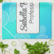 Promueva su negocio con una toalla de té personalizada, con una variedad aleatoria de círculos inspirados en la mandala blanca, sobre un vibrante arco iris mezclado en agua y azul. Es una celebración de un fondo luminoso y colorido. Su nombre, profesión o título se puede introducir fácilmente con la plantilla. Cambie el texto y las fuentes a un estilo y color de su elección.