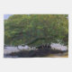 El manglar, en la fotografía original de ZoeSPEAK en esta toalla de cocina, crece en el borde de una playa en el Golfo de México. El árbol está casi rodeado por el agua azul del mar, pero una parte de la arena marrón cálida llega a un lado. La luz del sol tira sombras sobre la arena y resalta las pequeñas hojas verdes de los manglares. El cielo azul y las nubes blancas hinchadas terminan la escena.