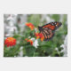 Fotografía original de arte fino de Shelley Neff Design and Photography con una mariposa monarca (Danaus plexippus) que es una mariposa de hierba de leche (la subfamilia Danainae) en la familia Nymphalidae bebiendo néctar de un naranja brillante y de color rojo Lantana. Considerado una especie de polinizador icónico y también conocido como alga de leche, tigre común, vagabundo y mariposa marrón vedada negra. Sus alas presentan un diseño negro, naranja y blanco fácilmente reconocible. La población monarca del este de América del Norte es notable por su migración anual hacia el sur a fines de verano y otoño desde los Estados Unidos y el sur de Canadá a México. Durante la migración de otoño, los monarcas cubren miles de millas, con un correspondiente retorno multigeneracional hacia el norte. La población norteamericana occidental de monarcas al oeste de las Montañas Rocosas a menudo migra a sitios en California, pero también se ha encontrado en sitios mexicanos en invierno. Los monarcas fueron transportados a la Estación Espacial Internacional y criados allí. Lamentablemente, después de diez veces la disminución de la población de la población de las mariposas monarcas orientales a lo largo de la última década, un estudio de 2016 predijo una probabilidad del 11-57 por ciento de que esa población se extinguirá en los veinte próximos años. Hace el regalo perfecto para cualquier tipo de mariposa conservacionista o entusiasta de la naturaleza. Se ve perfecto en cualquier producto, pero especialmente en tarjetas de visita, postales, posters, tarjetas de felicitación, sellos postales, refrescantes de aire, esteras de baño, esteras de puerta, placas, servilletas, trivetas, pegatinas, baldosas, botones, imanes, impresiones fotográficas o de lienzo, y se puede personalizar añadiendo tu nombre u otro texto eligiendo 'Personalizar It'. Póngase en contacto con nosotros directamente si necesita ayuda para la personalización o desea ver esta imagen en un producto diferente. Para ver todos los demás productos de nuestra tienda que coincidan con este diseño, visite http://www.zazzle.com/sneffygirl* y haga clic en la categoría ‘Mariposas > Mariposa monarca en Naranja y Lantana Roja’. ¡Gracias por tu interés!