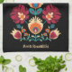 Paño De Cocina Marrón, verde azulado y amarillo pastel Wycinanki