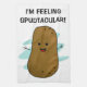 Cuesta, divertida papa, me siento pudtacular en texto negro en la parte superior del diseño. Debajo hay una feliz papa marrón con palos para los brazos y pequeños puntos negros para los ojos y una gran sonrisa feliz.