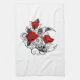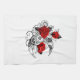 Contorno, luna de media luna mecánica con engranajes, decorada con rosas rojas con tallo negro y hojas sobre fondo blanco. Steampunk