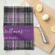 Merry Christmas purple tartan plaid script name kitchen towel. Personalize with text..