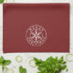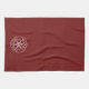 This kitchen towel features a white snowflake on a deep dark red background with a customizable greeting, currently saying "Merry Christmas". Keep as is or edit the greeting right on the product page to make it your own.
