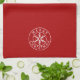 This kitchen towel features a white snowflake on a deep red background with a customizable greeting, currently saying "Merry Christmas". Keep as is or edit the greeting right on the product page to make it your own.
