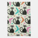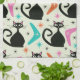 Paño De Cocina Mid Century Black Atomic Cats with Boomerangs