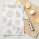 A delicate seamless floral pattern kitchen towel featuring elegant line art illustrations of wildflowers, leafy stems, and tiny berry branches on a clean white background. This minimalist botanical design uses soft neutral tones and fine outlines to create a calm, modern aesthetic.