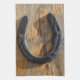 Un diseño equino occidental encantador del encanto de buena suerte. Mirada de madera nudosa occidental del grano. ¡La FOTOGRAFÍA del arte de madera real en el rancho parece de 3 dimensiones! La herradura afortunada usada se atornilla a la losa de la madera de pino resistida. Las sombras cruzan la madera agrietada con los nudos. Herradura a partir del uno de los caballos felices que viven con ella medicina del lobo. (EL PRODUCTO NO ES MADERA REAL. NO SE ATA NINGUNA HERRADURA REAL.)