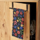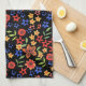 Una toalla de cocina de moda o una toalla de té al personalizar, con un patrón de bonito floral en un fondo negro que se puede cambiar si se desea. Parte de la colección "Granny Print" de Posh & Painterly.