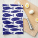 Paño De Cocina Modelo de los pescados - azul marino en blanco