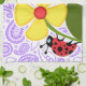 ¡Usted amará esta mariquita linda, roja con la flor amarilla en diseño púrpura del modelo de Paisley! ¡Le invitamos a a nuestra tienda, tienda del cumpleaños del niño, que vea este diseño temático de la mariquita fresca en muchos más grandes productos adaptables, incluyendo invitaciones bonitas, y tarjetas de cumpleaños adorables!