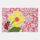¡Usted amará esta mariquita linda, roja con la flor amarilla en diseño rojo del modelo del damasco! ¡Le invitamos a a nuestra tienda, tienda del cumpleaños del niño, que vea este diseño temático de la mariquita fresca en muchos más grandes productos adaptables, incluyendo invitaciones bonitas, y tarjetas de cumpleaños adorables!