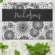 This is a high-contrast, modern, monochrome pattern featuring an intricate overlay of geometric and botanical forms. The design achieves a harmonious balance between the precision of simple shapes and the fluidity of natural inspiration.