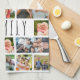 Create a modern, unique, photo collage kitchen towel utilizing this easy-to-upload photo collage template featuring 19 square and rectangle pictures to accommodate a variety of types of photos and the title FAMILY or a name in a modern typography in your choice of text and background colors in EDIT to create a one-of-a-kind kitchen towel. Makes a memorable, meaningful gift for family and friends, bakers and chefs, a bridal or baby shower, wedding or housewarming occasions. ASSISTANCE: For help with design modification or personalization, color change, resizing or transferring the design to another product, contact the designer BEFORE ORDERING via the Zazzle Chat MESSAGE tab below or email makeitaboutyoustore@gmail.com.