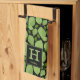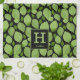 Toalla de cocina en monograma botánico con motivos de hierba de la hoja verde. La albahaca verde sale en un patrón sobre un fondo negro. Añade tu monograma y nombre.