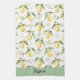 Cocina con estilo con nuestra toalla de cocina botánica de flores blancas de limón de cítricos monograma. Con ilustracion de acuarela de patrón de vegetación botánica de cítricos y un texto editable que se puede personalizar con su nombre con el tipo de letra del guión. Es un regalo para los amantes de la naturaleza y de la cocina.