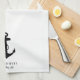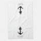 Toallas de cocina de temática náutica para tu barco con un ilustracion clásico de un ancla negro y el nombre y ubicación de tu barco en una tipografía y escritura simple y elegante.