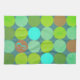 Patrón de círculo moderno con verduras de cal, colores turquesa y rojizo sobre verde azulado.