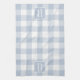 Toalla de cocina rústica de diseño personalizado con monograma personalizado sobre el patrón de verificación de búfalo azul polvoriento claro.