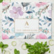 Paño De Cocina Monograma de las flores de color azul pastel