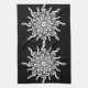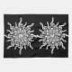 Toallas únicas de cocina con temática musical para músicos y amantes de la música para las vacaciones de invierno. Los g-clefs blancos que se fusionan forman un copo de nieve hecho de notas de trible clef. Utilice la plantilla de texto para añadir un primer o un monograma en el medio del diseño ornamental. Edite para cambiar el fondo negro clásico, el borde central del círculo y el elegante estilo antiguo a cualquier color que desee. ♡ Idyllfire