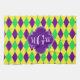 Patrón de diamante morado, amarillo y verde arlequín, cuatrefoil púrpura 3 Monograma inicial Un patrón de diamante de mardi-gras elegante, colorido y de moda en color morado, amarillo y verde. Personalizar la etiqueta de quatrefoil púrpura con un monograma inicial o cambie el diseño para añadir su nombre u otro texto. (Haga clic en "Personalizar" para cambiar el tipo de letra, ajustar el tamaño de las fuentes, los colores de las fuentes, agregar campos de texto adicionales, etc.) Si quieres este diseño / etiqueta en otros colores, simplemente envíanos un correo electrónico. 2013 ©FantabulousPatterns Todos los derechos reservados
