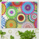 Hermoso patrón de molinos de mosaico con salpicaduras de color para alegrar tu día. Espirales de azul, rosa, rojo, verde y dorado. ¡Muy genial! Diseño creado por Black Brook Photography con un gráfico de Pixabay en setiembre de 2014.