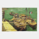 Muelle con hombres descargando barcazas de arena de Vincent van Gogh es una pintura marítima postimpresionista de arte fino vintage que presenta trabajadores descargando carga de barcos en el río. Una de las barcazas tiene una bandera francesa.
