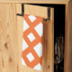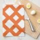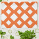 Un patrón audaz y geométrico de diamantes blancos grandes y pequeños sobre un fondo naranja. El naranja vibrante forma una entramado que separa las formas de diamante blanco.
