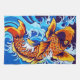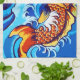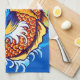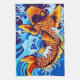 Pescado naranja koi al estilo de los tatuajes en un fondo de agua azul alrededor del pez koi