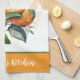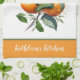 Deliciosas naranjas y verdor en esta toalla de cocina personalizada. Agregue su nombre y esto hace un regalo de boda o regalo de inauguración de la casa maravilloso.