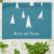 Barcos de vela corriendo en un mar verde y brillante verde azulado. Un divertido diseño náutico para los amantes de la vela. Arte original de Nic Squirrell. Cambie el nombre a personalizar.