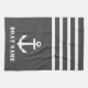 Ancla clásica personalizado con su nombre de barco personalizado en una elegante toalla de cocina gris con rayas blancas.