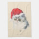 Navidad del gato, un ilustracion lindo que ofrece un gato persa que lleva el gorra de Santa. Colores principales: beige, blanco, rojo, gris, negro y amarillo. El dibujo original fue hecho con los lápices coloreados por el © E.D. Siffert del artista.