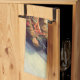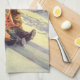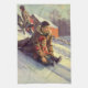 Ilustracion de la Vintage. Imagen de feriado navideño con un padre con su pequeña niña divirtiéndose en trineo o tobogán por una colina cubierta de nieve en invierno.