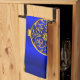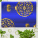 Un colorido patrón de Navidades de Navidades dorados se balancea sobre un fondo azul real para agregar un toque de estilo y alegría a las festividades de sus Navidades y la decoración de las vacaciones de esta temporada de Navidades.