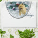 Exquisito arte navideño con un adorable cairn terrier parado frente a un árbol de Navidad lleno de nieve, decorado con adornos que parecen brillar a la luz de la luna. Maravillosos regalos para los amantes del cairn terrier.