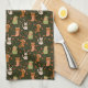 Navidades amables y divertidos toalla de cocina con ilustracion a mano de gatos y perros con luces de Navidad. El fondo es verde.
