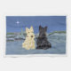 Terroristas escoceses afuera en una noche de diciembre, ¡admirando a la estrella de los Navidades en el arco del cielo sobre ellos! Un Navidad de perro escocés quiere bendiciones para todos. Ven a visitar la tienda Maggie Ross Scotties y verás esto además de otros 400 diseños estacionales creados a partir de mis obras de arte originales sobre ropa, novedad y artículos de regalo. ¡Aroooo! Feliz Navidad!