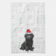 Aquí hay una divertida toalla de cocina o toalla de mano todo el año. Un adorable ilustracion acuático de un lindo perro de Santa Labradoodle que se sienta con un divertido fondo de arte de palabra "woof". El perro lleva un sombrero de Santa.