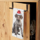 Aquí hay una divertida toalla de cocina o toalla de mano todo el año. Un adorable ilustracion acuático de un lindo perro de Santa Pintor de Shorthair alemán que se sienta con un divertido fondo de arte de palabras ‘woof'. El perro lleva un sombrero de Santa.