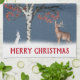 Venado, conejo blanco y búho nevado con berry rojo con copos de nieve sobre fondo azul.