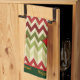 Las toallas de té son siempre un éxito en el tiempo del Navidad para todas las edades y géneros, pero añadir un monograma y una opción para personalizar las leyendas hace que sean especiales, ya que muestra que se piensa en seleccionar el regalo correcto. Esta toalla presenta un patrón de zigzag en gradientes de diamantes de concave verde, rojo y crema con rojo para el monograma del receptor en oro. Los saludos en la frontera inferior también son personalizables.