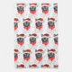 El gato negro de navidades con bufanda roja tiene una acuarela de un gato negro con un Gorra de Santa roja y una bufanda de gato de Navidades rojos, y un fondo con coloridas estrellas acuáticas.