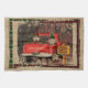 Los navidades Gnome Sweet Gnome diseñaron una rústica casa de campo de vacaciones con 3 adorables Gnomes con un camión rojo antiguo, el cartel Gnome Sweet Gnome y los acentos envueltos en una imagen de fondo de burlap.