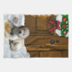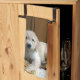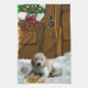 Adorable goldendoodle está vigilando las galletas que quedan afuera de la puerta de Santa.