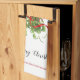 Sencillos y elegantes Navidades Mistletoe con un listón rojo y un guión de caligrafía navideña de Feliz.