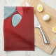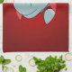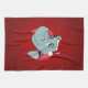 Toalla de cocina con un ilustracion de un lindo hipopótamo feliz con un gorra de Santa Claus rojo y blanco; diseño de vacaciones para Navidades para niños, en un fondo rojo